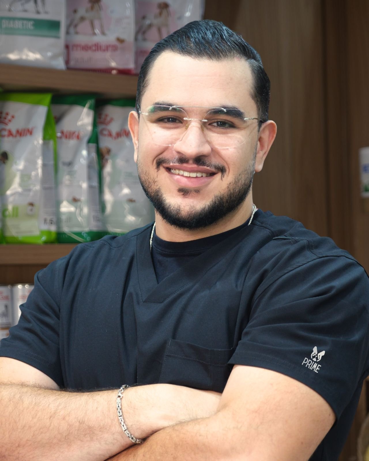 Dr. Ahmed, with 3+ years in internal medicine and small animal surgery, delivers precise treatments and preventive care. He is fluent in Arabic, and English, and a devoted owner of his Egyptian Mau, Shokry, he draws on personal experience to provide compassionate, thoughtful care to every patient.