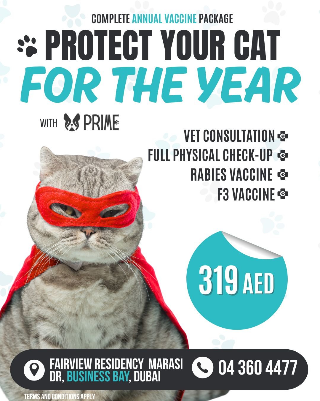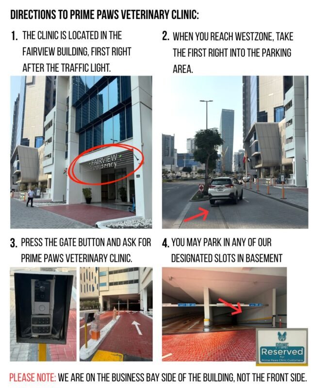 Bring your pet’s vaccination records, medical history, and Emirates ID (if applicable for