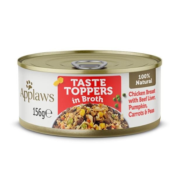 Applaws Taste Toppers in Broth Chicken with Beef Wet Dog Food 156g Tin