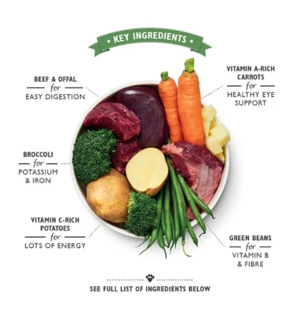 - Contains beef, potatoes & carrots