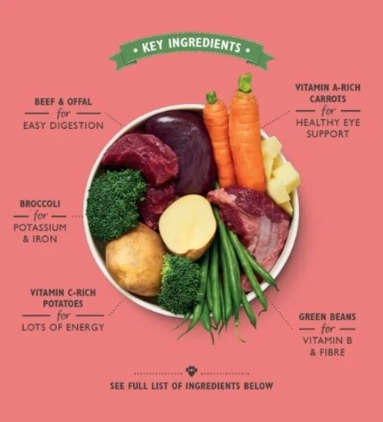 - Contains beef, potatoes & carrots
