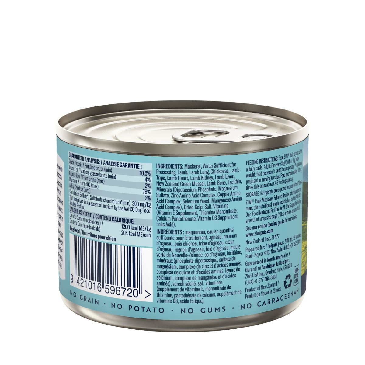 Blue Mackerel is a sustainably-caught fish from the pristine blue waters of New Zealand, rich in Omega 3 and 6 fatty acids. Ziwi Lamb is sourced only from local New Zealand farms, ensuring the animals are free-ranging, grass-fed and finished.